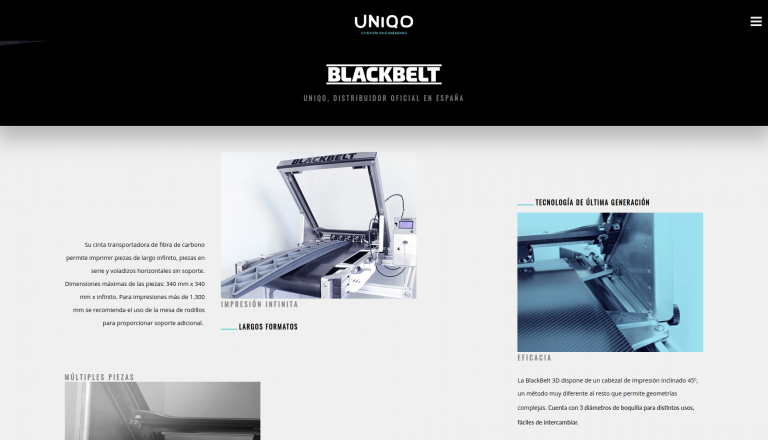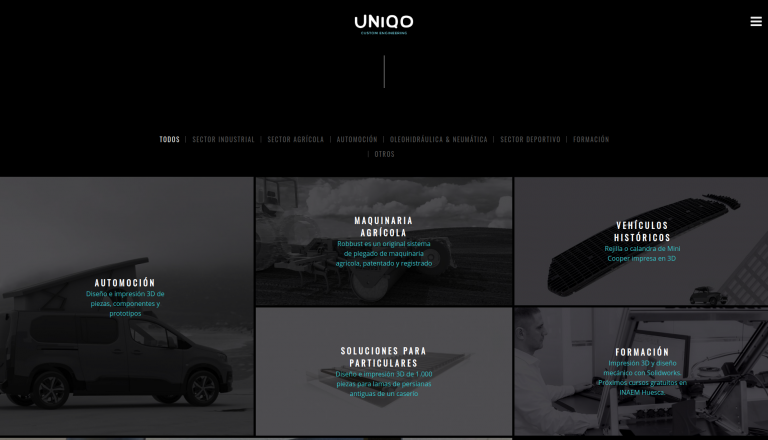 Desarrollo de página corporativa y portfolio para Uniqo Engineering. Empresa especializada en Impresión 3D y suministros.
