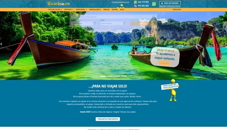 ViajarSolo.com es la agencia pionera en España en viajes para singles desde 2002. Cuenta en catálogo con cientos de viajes a todas las partes del mundo y con viajeros de toda España, Europa y Latinoamérica.